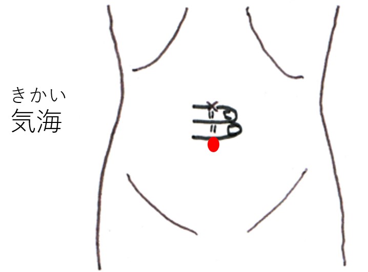 へそに人差し指の第2関節を合わせます。へそから指2本(人差し指と中指)下にさがったところ。(難しくないので動画を付けていません。)